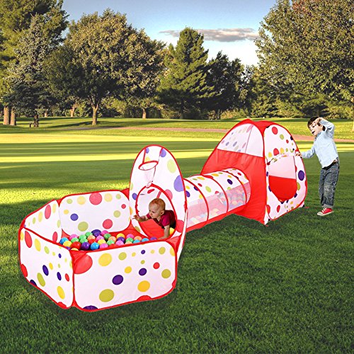 Kids Playhouse Tent With Tunnel Set,PortableFun® Outdoor Indoor Bounce Playhouse Ball Tent Toys – Perfect Christmas Gift For Toddlers Child(Ball Pits Not Included) Item Description: 1:Boys and girls all can spend hours of fun playing in this Playhouse Tent Set. 2:Bright colored polka dot design adds excitement,Features airy mesh sides adds visibility. 3:Pop-up design,come...