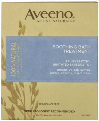 Aveeno Soothing Bath Treatment relieves dry, itchy, and irritated skin with 100 percent natural colloidal oatmeal. This dermatologist- recommended treatment helps temporarily protect and relieve itch and irritation due to poison ivy/oak/sumac, rashes, insect bites, and eczema. Professionally recommended to temporarily help relieve itchy, irritated, dry skin. When dispersed in water, this fragrance-free colloidal...