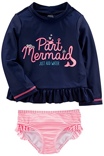2- piece swim rash guard set with UPF +50 protection Product Features Long sleeve rash guard with ruffle bottom Bottom features ruffles Trusted Carter’s quality, everyday low prices, and hassle-free packaging