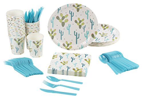 This Disposable Dinnerware Party Pack has all the dinnerware you need for 24 guests. Includes 24 of each of the following items: Plastic Knives, Spoons, Forks and Paper Plates, Napkins and Cups. Plates are thick and rigid and won’t fold while carrying food. Napkins are soft and absorbent–a pleasure to use. Flatware set is...