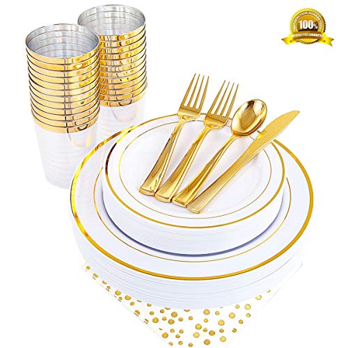 RECYCLABLE & BPA FREE:Enjoy a healthy life with those gold plates, gold cups and flatware! Have a healthy and safety celebrate time! DURABLE PACKING: We use sturdy polybags and strong gift box in order to ensure the product arrive in the best condition. NOTE & TIPS: After party you can reuse gold dinnerware by...