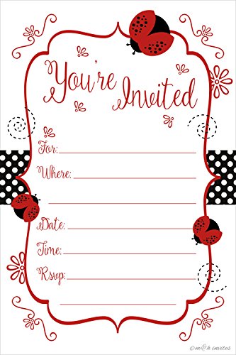 Welcome your guests to your special celebration with these fun and colorful invitations by m&h invites. Great for any lady bug themed occasion. Includes 20 Envelopes. Post card style (non folding) invites measure 4″ x 6″. Heavy-weight matte card stock. Product Features Includes 20 Fill In Invitations With Envelopes Post Card Style (Non Folding)...