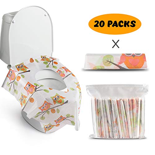 Gimars Disposable Potty Training Seat Cover Product Features larger size (24 *25in) to cover the whole toilets surface & front & sides and protects hands & legs from touching toilet – Large and long enough to hang down the front & sides of toilet, keeping your child safe from exposure to germs and mess...