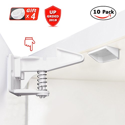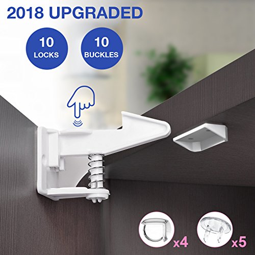 Cabinet Locks,Baby Proofing Child Safety Cabinet Latches Locks with Buckles and Screws,Easy Adhesive 10 Pack Child Cabinet Locks Without Tools Drilling Measuring for Drawers,Cabinets,Closets-White ♚Features1.Easy to install,no drill or tools 2.Fit a variety of furniture3.Invisible design and visible safety4.Upgraded version,stronger and safer ♚Specifications* Color:White* Matrial:Plastic ♚Tips1.Make the sticking surface position is clean and dry...