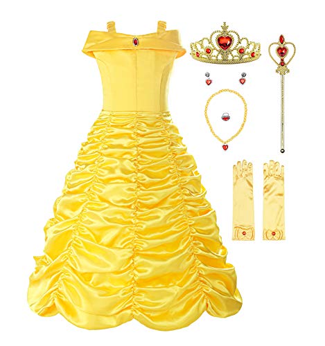 The latest Belle dresses are made from high quality fabrics.Shows a very beautiful yellow. Very special style, cute drop shoulder design. The hem iswell-defined.   This dress makes her more beautiful whenever and wherever yourlittle princess plays or dances.   In the occasion of birthday parties, family dinners,role-playing, etc, it can perfectly display the...