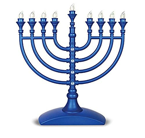Battery Operated LED Hanukkah Menorah With Crystal Like Stones and Permanent Bulbs, Blue Product Features This Beautiful LED Hanukkah Menorah Looks Great in Any Home or Business Features a Hanukkah Blue Body With Crystal Like Stones Includes Permanent Bulbs Which Never Need to be Replaced. Simply Push a Button to Advance to the Next...