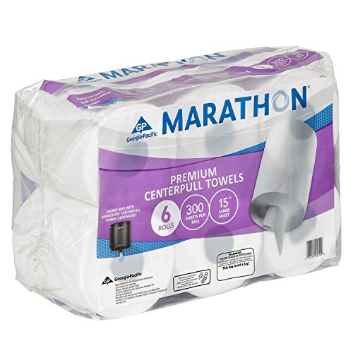 Marathon Center Pull Paper Towels are soft and absorbent and designed to work with the Marathon Center Pull Towel Dispenser. Each roll contains 300 towels (375 linear feet) that are delivered one at a time through the Marathon dispenser. Each poly pack of six rolls contains the equivalent of 51 rolls of kitchen towels....
