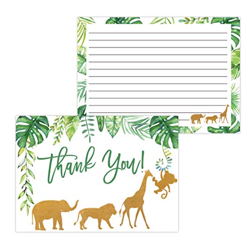 Handwrite your event details in the spaces provided, and invite your guests with these premium fill in Jungle Boy Baby Shower or Sprinkle thank you cards featuring tropical leaves, elephant, monkey, giraffe and lion. These are perfect for your baby boy’s baby shower or sprinkle! Professionally printed on premium heavy weight cardstock and designed...