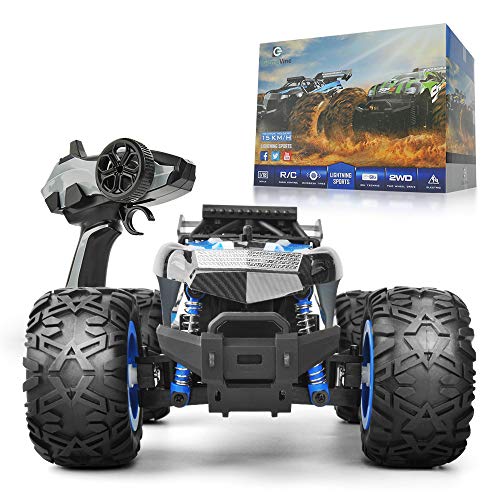 Specifications: Frequency:2.4GHZ Material:100% harmless PVC and electronic elements. Scale size:1:18 Remote control distance:50m Highest speed:12mph Color:blue product dimension:7.6*11.4*5.1 Inch package dimension: 9.0*14*7.4 Inch product weight:1.2kg package dimension:1.5kg Package included: 1*Box 1*User Manual 1*Rechargeable Battery 1*RC car 1*Remote Control Product Features ★ Realistic Off-road Buggy Looks:With 1:18 scale simulation design provide a super realistic driving...