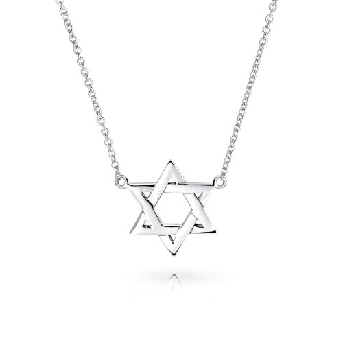 Celebrate your Jewish heritage with this Star of David necklace. A petite woven Star of David pendant sits in the center of a silver chain, giving this piece of religious jewelry a classic style that will brighten up your favorite outfit. This highly polished silver station necklace features a woven Star of David design...