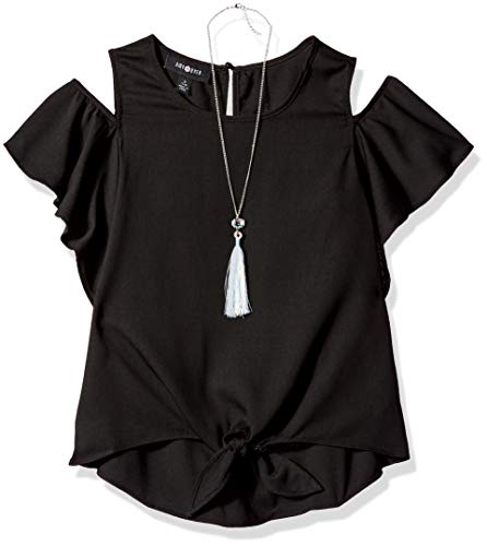 This flutter sleeve cold shoulder top with necklace from Amy Byer is the perfect addition to her wardrobe. You can feel good about the price and quality of Amy Byer clothes for tween girls. Product Features Features tie-front detail Short, ruffle sleeves fall from the shoulder for a peek-a-boo, cold-shoulder look Come with a...
