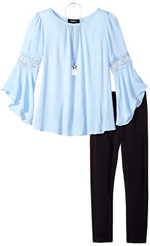 This bell sleeve top and leggings 2-piece outfit set with necklace from Amy Byer is the perfect addition to her wardrobe. You can feel good about the price and quality of Amy Byer clothes for tween girls. Product Features 2-Piece clothing set/outfit Features a tunic top and bottom Top: bell sleeve tunic with lace...