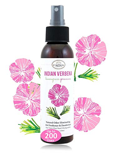 Enjoy the long lasting fresh and citrusy aroma of our NATURAL Air Freshener Bathroom Spray lemongrass and geranium blended natural home and room air freshener spray. This anti odor eco friendly air freshners can be used as an aromatheraphy spray or pillow mist or linen freshener. The Crown Choice Natural bathroom spray air freshener...