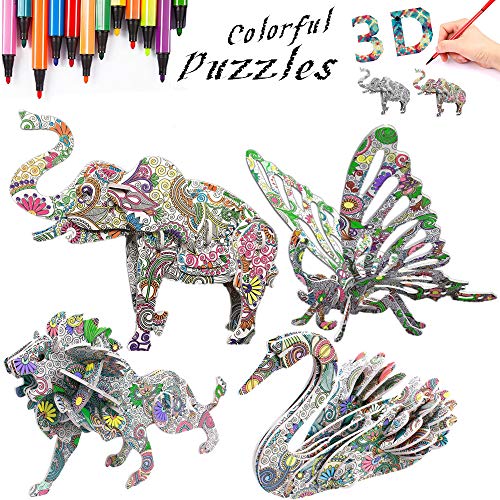 DIY Arts and Crafts for Girls & Boys-Perfect Creativity Kit & Ideal Kids and Adults Gifts! -3D Coloring Painting Animal Puzzle Set (4 Pack) -STEM Educational Assembly Toys Product Features BENEFITS OF SOLVING PUZZLES FOR CHILDREN AND ADULTS – solving puzzles on a daily basis more often than not, results in the best possible...