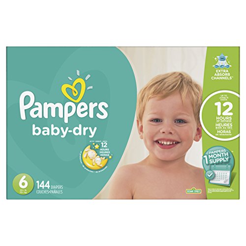 Pampers Baby-Dry Diapers are 3x drier for all-night sleep protection. Your baby can get up to 12 hours of overnight dryness with Pampers Baby-Dry diapers. They have 3 Extra Absorb Channels that help distribute wetness evenly and lock it away better. Sizes N, 1, and 2 have a color-changing Wetness Indicator to help you...