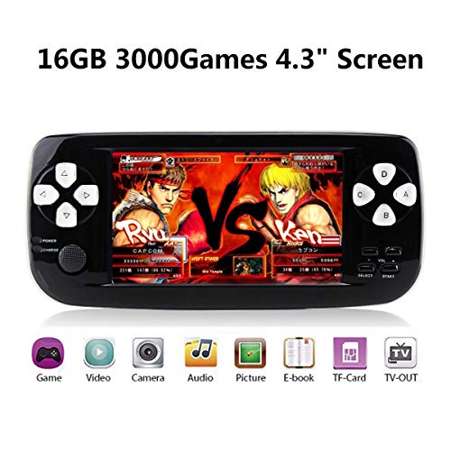 PAP-KIII Handheld Game Console Specification: Screen:4.3 Inch screen , resolution(480*272)Games : 16GB Memory , built in 3000 retro games TF Card:Max expand to 32G,please make sure the file format is FAT32 (Package Without TF Card) Camera Support :200 million rear camera Video fromat:Support RM/RM VB/MP4/3GP/AVI/ASF/MOV/MPE/DAT/MPEG.MPG etc.Format video playing Music:Support MP3/WMA/WAV/APE/RA etc.music format playing Digital...