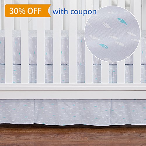 TILLYOU pleated 100% cotton crib skirt adds a touch of softness to any cribs. The durable poly/cotton centerpiece covers the spring or board to protect your mattress. This crib bed skirt is 14″ deep with a finished baby hem and split corners to make it easy-change. Machine wash cold with like colors. Tumble dry...