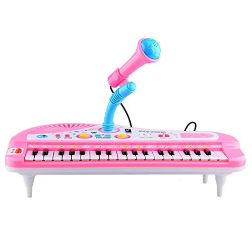 Features:Mini size, lightweight and durable.This kids piano comes with a micphone which make your child can play the piano while singing 37 keys electronic keyboard.2 tones of electronic organ and accordion. 2 sound effects of prolonging sound and vibrating tremolo sound. 24 melodies demo songs. Practice children’s music talents, imagination and also bring pleasure.High...