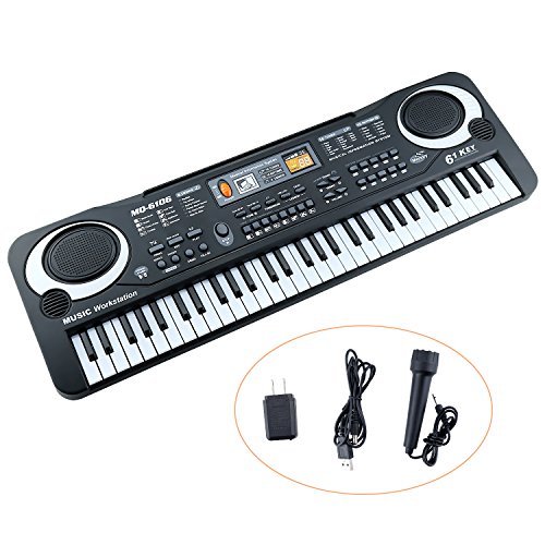 61 black and white keys electronic piano, made of plastic and electronic components A wonderful music intelligence toys to develop children’s brain awareness With excellent function of 16 kinds of timbre, 8 kinds of percussion instrument recording, 10 kinds of rhythm, 6 demos also with the adjustment of beats and volume Power supply and...