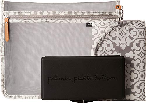 Compact and clever, the Take-Along Changing Kit is one of the Petunia Pickle Bottom accessories that you need for diaper changing essentials on the go. This unique 3-in-1 kit offers a PPB-monogrammed wipes case and a playfully printed changing pad housed in an easy-to-clean and easy-to-tote mesh pouch. Product Features Diaper changing kit contains...