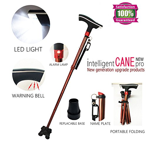 😍1.This Walking Cane combines all features you need.🎈LED LIGHT//🎈FOLDABLE//🎈ADJUSTABLE LENGTH//🎈ALERT RINGTONES//🎈TWO DIFFERENT TYPES OF BASES//🎈NAMEPLATE//🎈WRIST STRAP//🎈PORTABLE BAG.😍2.Benefited from the ergonomically design,The Walking Stick handle provide both maximum comfort.Also you can turn on the LED night,SOS alarm easily 😍3.Withtwo different bases,Any kind of road can be easily handled.The protability of crutches has improved.😍4.With the adoption...