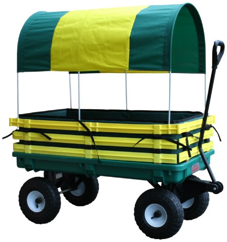 20″ X 38″ Trekker Poly Wagon with 4″ X 10″ Pneumatic Tires, Yellow Poly Rack Set and a Yellow and Green Full Canopy. Product Features Anti-tip Auto Type Steering Extra Length Handle for Effortless Pulling Heavy Duty Undercarriage