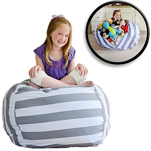 (Stuffed animals not included) Stuffed Animal Storage Bean Bag 38″ diameter (These are seriously big) *Size dimensions are approximate and may vary depending on how full the product is and direction of measurement. Simply fill, zip, and sit down. Make, that mountain of critters start working for you and make your kids room look...