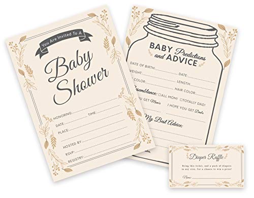 We wish you the best for you Baby Shower and wish to make your party even better with our elegantly and beautifully designed invitations! Set includes 25 Invitations, 25 Prediction, and 25 Diaper Raffles Cards Measure 5 x 7 Inches Raffles Measure 3.5 x 2 Inches Quality Matte Card Stock to Make Writing...