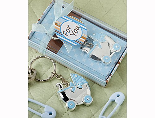 Looking for party favors for a baby boy? With these blue baby carriage design key chains, you’re ready to roll One of the classic symbols associated with a new baby’s arrival, a baby carriage is sure to trigger smiles. And this baby carriage design keychain favor will give your guests a warm, memory-filled feeling...