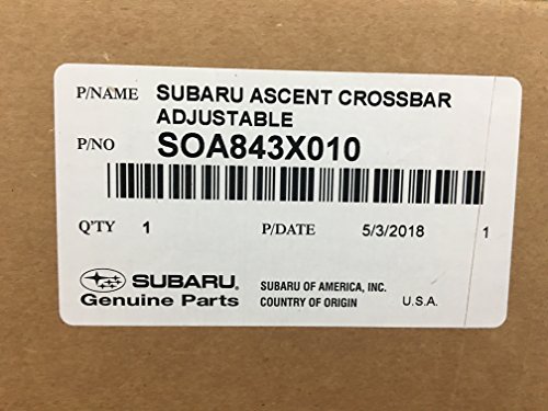 Product Features Genuine Subaru Ascent Cross Bar Set Aero Crossbar Set – Aero SOA843X010 ncrease your vehicle’s cargo-carrying capabilities by adding a crossbar set. These aero-style crossbars may be used in conjunction with Genuine Subaru roof attachments and carriers. Consult vehicle owner’s manual for total roof load limit. Aero Crossbars do not support the...