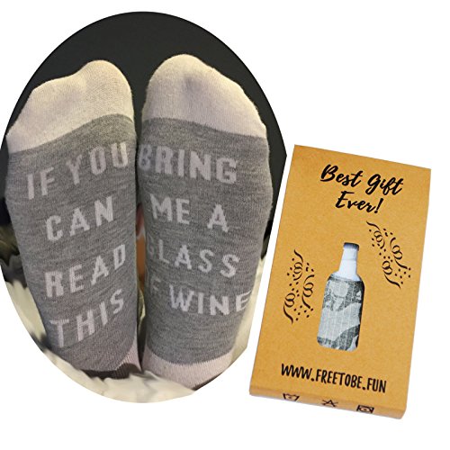 Your favorite wine lover will have warm feet and a smile on her face with these awesome and hilarious “If you can read this, bring me a glass of wine” socks. Our wine socks are better than the competition because they come in a box ready for gifting (wine not included!) This funny wine...