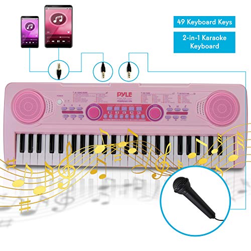 Pyle Model : PKBRD4911PK Portable Kids Piano Keyboard & Mic Kit Children’s Musical Karaoke Keyboard – Portable Kids Electronic Piano Keyboard with Built-in Rechargeable Battery & Wired Microphone Features:2-in-1 Karaoke Keyboard: Play & Sing-Along!Includes Wired Handheld MicrophoneSmart Piano Teaching Function with Piano Key LightingCompact & Portable Musical PianoSimple Electronic Plug-in OperationPortable Piano, Built-in Rechargeable...