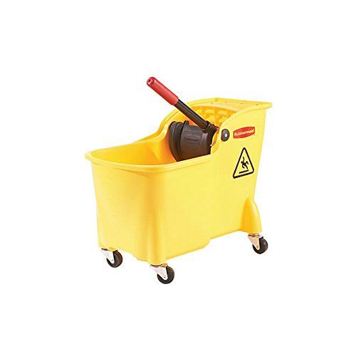 One-piece, compact design with integrated mop bucket and wringer. Reverse wringing mechanism makes it more comfortable to use. Built in handles on bottom of bucket make lifting and emptying easier. Accepts up to 24-ounce mops. Made in the USA. Rubbermaid Professional Plus Mop Bucket and Wringer Combo (FG728100YEL). Product Features One-piece, compact design with...