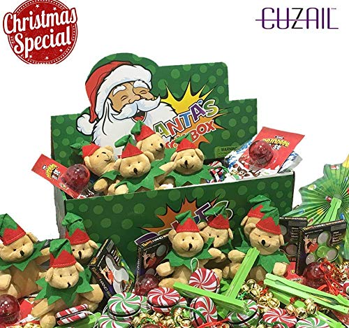 CUZAIL SANTA ASSORTED GIFT BOX :Enhance our Christmas Party with this fun exciting assortment of toys. Each box comes with 100 fun toys. includes YO YOs, Fidget Spinners, stuffed Santa teddies, light up reindeer nose and so much more.A fun modern day, party prize for kids and teens alike:This collection of toys will be...