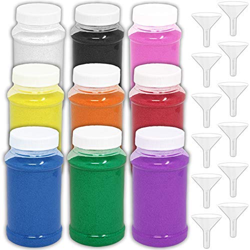 Bring out kids’ creativity (and your own) with this essential arts and crafts product! Our smooth sands are pretty, safe and so much fun to play with! Use the provided funnels for mess-free pouring. Product Features Textured art sand in 9 colors: Red, Orange, Yellow, Green, Blue, Purple, Pink, White and Black. We take...