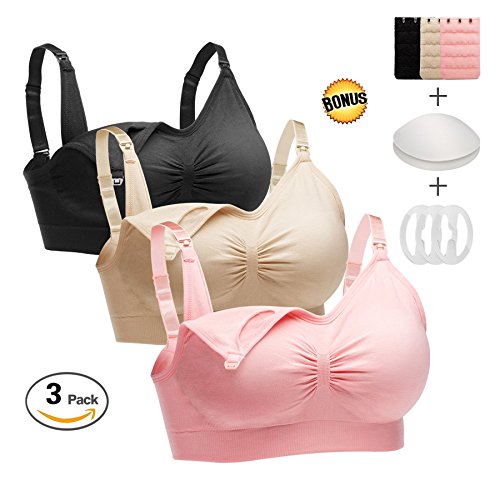 WHY CHOOSE OUR NURSING BRA?-This seamless bra bralette is designed both for Pregnant and Nursing. Nursing clips provide one-step to drop down cup for breast feeding, luxuriously smooth and gentle for mom and baby;-Stretchy band gives additional support which offers a perfect experience, seamless and breathable design;-Removable, molded foam cups for a lining, you...