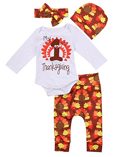 Please refer to the size chart when you purchased: Age————Chest Length——–Tops Length———Pants Length 0-3 Months—–44cm/17.32in——–38cm/14.96in——–39cm/15.35in 3-6 Months—–46cm/18.11in——–40cm/15.75in——–41cm/16.14in 6-12 Months—-48cm/18.90in——–42cm/16.54in——–43cm/16.93in 12-18 Months—50cm/19.69in——–44cm/17.32in——–45cm/17.72in Product Features Cotton blend, silky, soft and warm, not tight. My first thanksgiving outfit with turkey design, greet the season. Adorable style,great for the playwear, daily, party or photoshoot, especial for the outdoor...