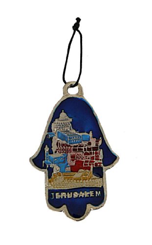 Metal Wall Home Blessing Hamsah Shape Jerusalem Skyline in Yellow, Red, Blue & Light Blue “Jerusalem” Lettering in English Size: 4.5″ Tall x 3″ Wide. Great Gift For: Bar Mitzvah Bat Mitzvah Rosh Hashanah Chanukah Wedding Shabbat Seder Night Passover Purim and Other Jewish Holiday Product Features World Wide Shipping