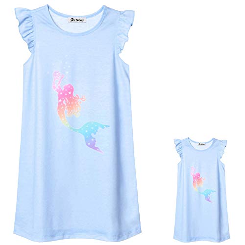 Product Features Matching girls & dolls nightgowns fit almost 18″ dolls and America Girl doll, flutter sleeve, loose fit, above-knee-length pajamas dress Flutter sleeve nightgowns with lovely blue mermaid pattern adds fun style Super soft cottony touch pajama dresses, crew neckline and flowing fit make for easy, comfortable wear Knee-length nightgown allows for ease...