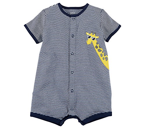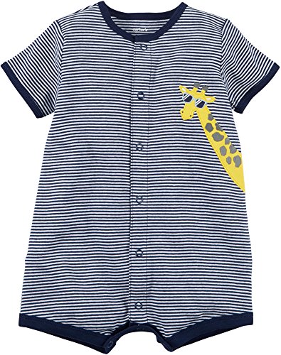 Dress him in this comfy romper from Carter’s featuring a giraffe wearing sunglasses graphic. Product Features Cotton Crew neck Short sleeves Contrast trim collar, sleeves, and legs Snap up front