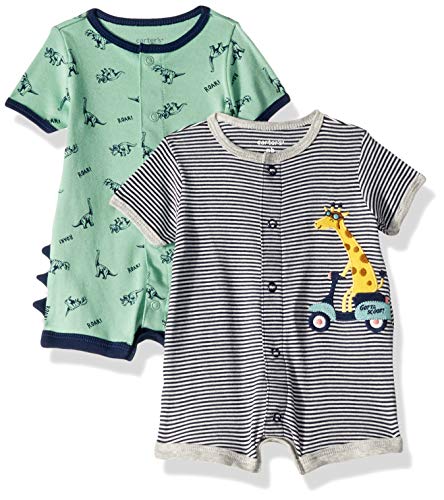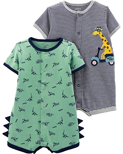 Set of 2 snap up rompers crafted in baby soft cotton featuring allover prints, embroidery, and appliques. Product Features Nickel-free snaps on reinforced panel Short sleeves Banded cuffs