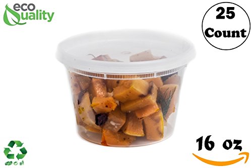 EcoQuality 16 ounce Disposable Leak Proof Deli / Soup Containers 25 Pack . The containers are made from translucent polyethylene plastic ensuring strength, sturdiness, and flexibility. No problems to freeze! Our plastic containers are freezer friendly; simply store leftovers without caution, cracking, or freezer burn! Breakfast, Lunch, Dinner On The Go! Environmental Friendly &...