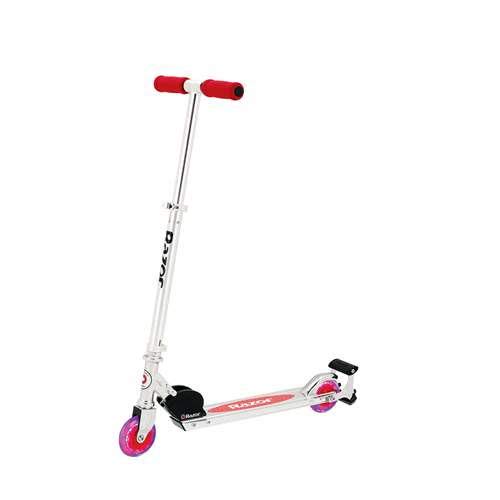 Kids can tear up the asphalt or the sidewalk in style with this Razor Spark Scooter. Made of durable aircraft-grade aluminum, it features a patented rear fender brake that allows them to stop on a dime every time. It comes with a foot-controlled, detachable bar with five flint pads that help create real and...