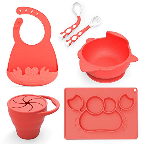 Le Bebe La Mama Baby Feeding Set, Your children are as precious as ours, so we guarantee 100% safety of our products. ; Including: ; Bowl with Suction*1 ; Dish*1 ; Bendable Fork and Spoon*1 set ; Adjustable Baby bib*1 ; Snack Container*1 ; Harmless, Silicone, Easy to Clean Again, Perfect Infant Baby Shower...