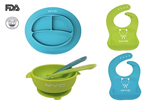 We, BabyEatery, have put together our convenient PREMIUM FEEDING SET for your baby or toddler .Our 7 pieces baby feeding set uses only 100% high quality food grade silicone and represents great value for money and includes the following: 2 easy clean and adjustable silicone bibs 1 non-slip divider baby plate with attached...