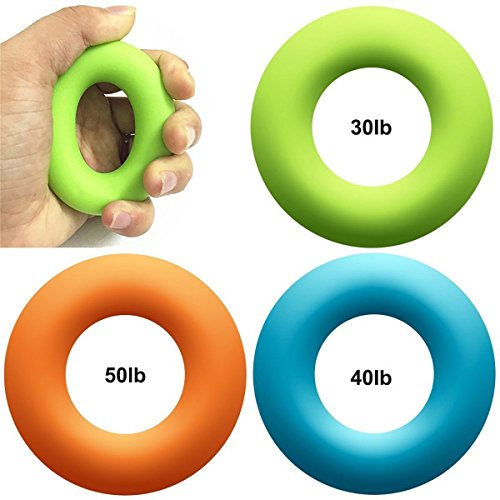 Specifications Ring size: outer radius-77mm, height-18mm; Perfect and comfortable fit for most adult hands Ring resistance: Green-30 lb, Blue-40lb, Orange-50lb Material: ECO friendly silicone material Features -Help prevent injuries and muscle imbalances from the overuse of “crushing” type hand and finger grip exercises. -Improve grip strength for athletes and musicians. -Ergonomically designed and fit...