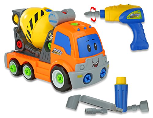 Advanced Play multi function cement mixer take apart toy truck is ready to roll. Maximize your fun pretend and play real construction work. This cement mixer vehicle toy includes a real working drill with interchangeable bits which allows you to take apart the entire truck and wheels. It includes multiple nails and pieces that...