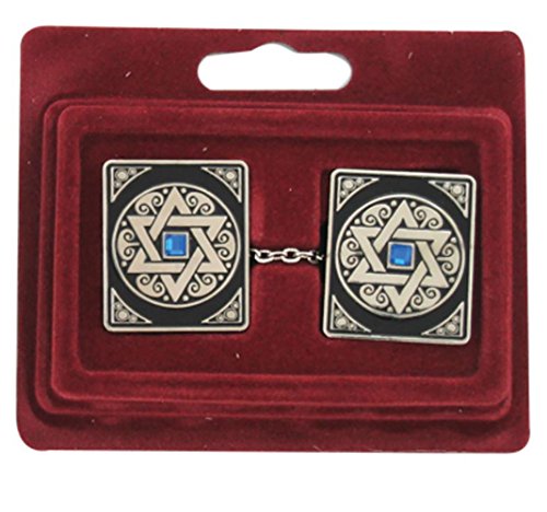 Mterial: Nickel Approximate size: 2.5″ Design: Magen David These tallit clips are designed with a Star of David and a blue stone in the center. These designed tallit clips will hold your tallit in place and at the same time will add beauty to the look of your tallit. A great buy, a great...