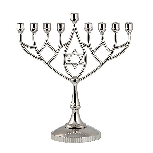 The all new sparkling satin silver Graceful transitional style Candle Menorah. A traditional simple structure with yet plenty chick and sophistication. A perfect size and style for all ages. This Menorah opposed to other low costing menorahs is a full size and solid weight product. The original new structure touches base with tradition with...