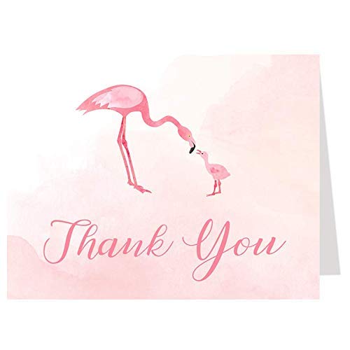 Thank guests for attending your baby shower with this adorable mommy and me flamingo card! Thank you cards feature watercolor mother and baby flamingo on the outside with blank white space on the inside, perfect for writing a personal note! Includes white envelopes. Product Features ♥ Price includes 24 thank you cards and 24...
